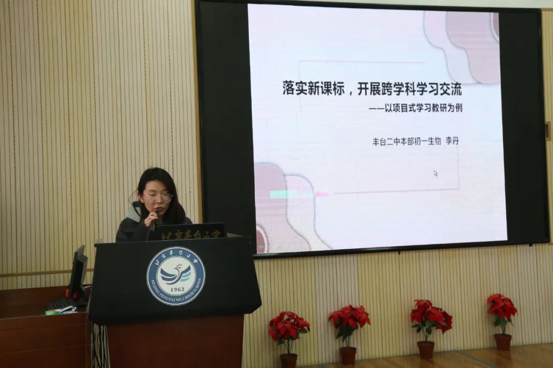 本部生物老师李丹,关注新课标,强调了跨学科教学实践的必要性,同时分享了自己项目式学习课程实践的经验。
